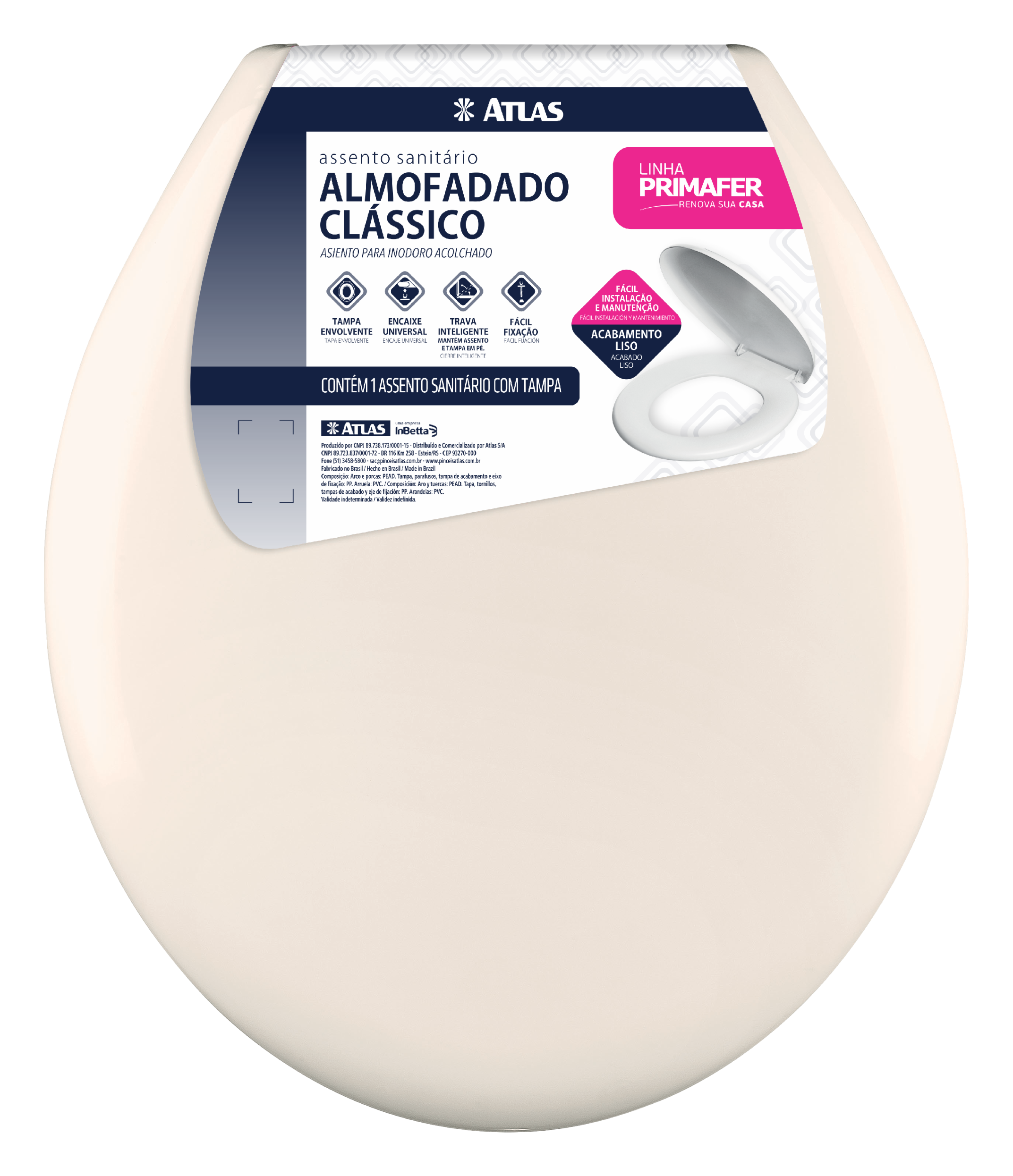 Assento almofadado, com design clássico, adapta-se a qualquer banheiro. Macio e confortável é a escolha perfeita para consumidores exigentes.
